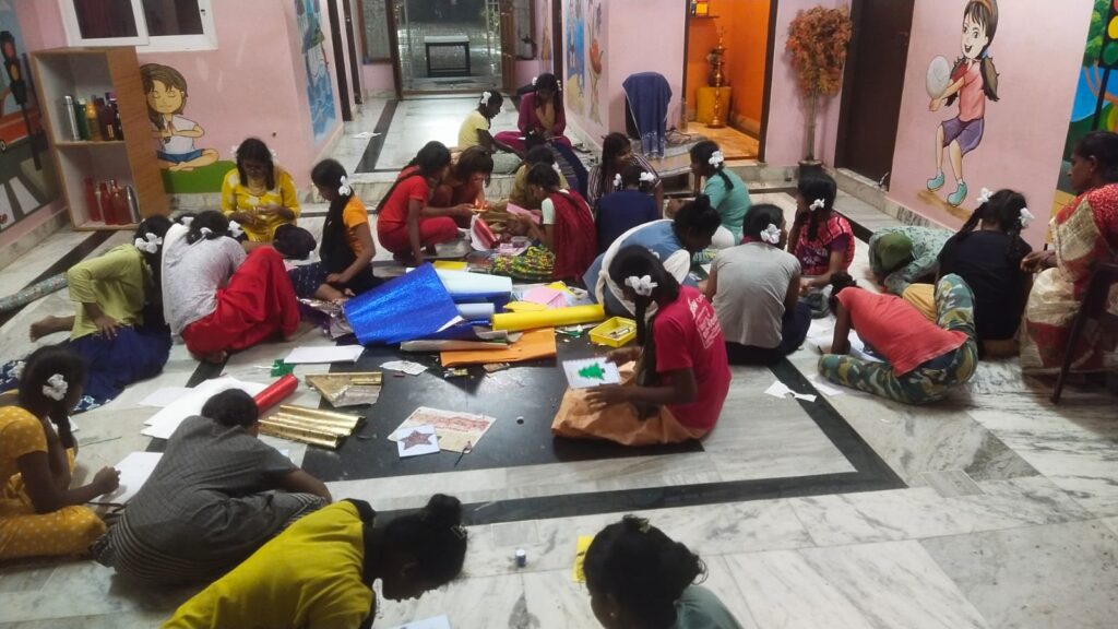 Die gemeinsame Zeit verbrachten wir mit dem Erledigen von Hausaufgaben, dem Einnehmen von hausgemachten Mahlzeiten, kreativen Bastelarbeiten und Fingerfarbenkunst, traditionellen indischen Tänzen, Feuershows, Gartenarbeiten und Gebet. Zudem erwähnenswert sind die Tamilstunden, in denen die Mädchen mir ihre Sprache oft spielerisch und musikalisch näherbrachten. Wir hatten einige ereignisreiche Tage und sehr viel Spaß zusammen trotz der zum Teil schweren Schicksale der Mädchen und der weitaus strengeren Erziehungsmaßnahmen als hierzulande. Ich stand ihnen jederzeit für Fragen aller Art zur Verfügung und hatte ein offenes Ohr für ihre Anliegen. Durch diesen intensiven Austausch fiel uns der Abschied wohl besonders schwer.